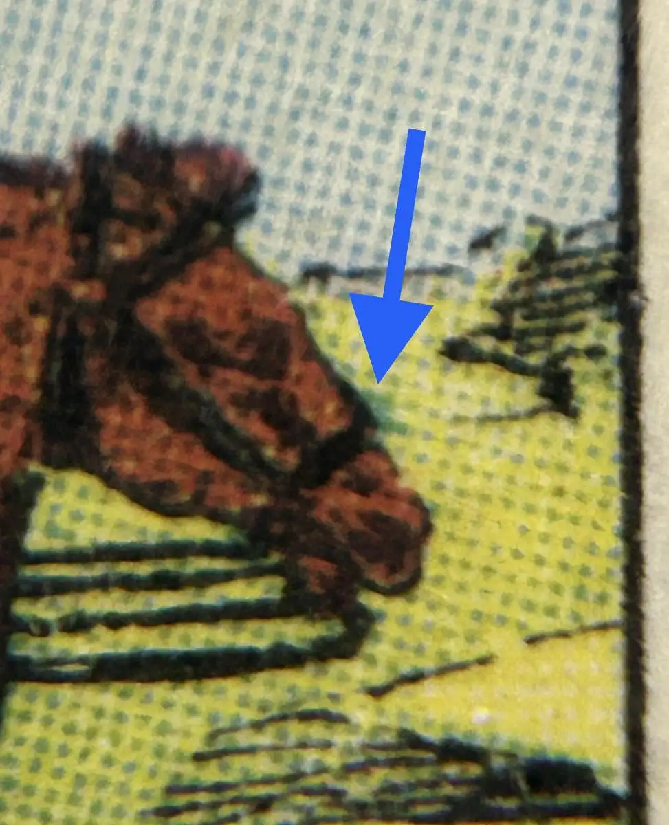 Plattenfehler Philotax Nr. 50-XD1: Grüner Fleck vor der Nase des Pferdes.