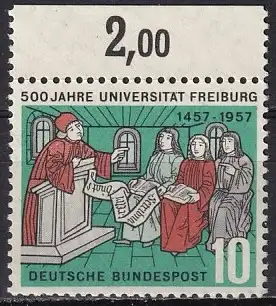 500 Jahre Universität Freiburg: Dozent vor Studenten; Wiedergabe aus der Freiburger Sapienshandschrift (15. Jh.)