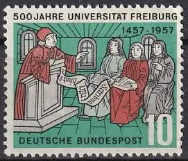 500 Jahre Universität Freiburg: Dozent vor Studenten; Wiedergabe aus der Freiburger Sapienshandschrift (15. Jh.)