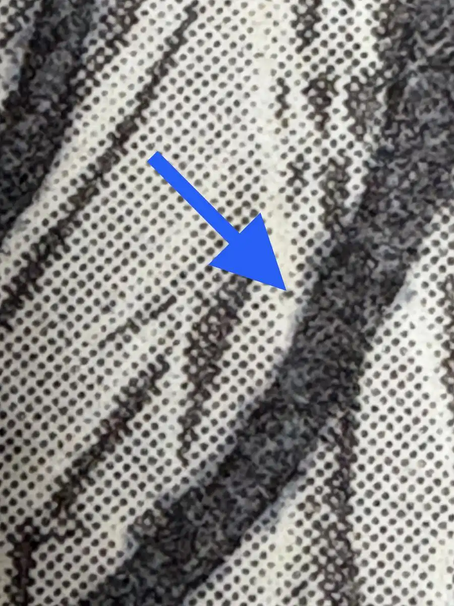 Plattenfehler Philotax 180-XX23: Schwarzer Punkt links unten am Körper, höhe Beinfeder, BF 14, B-Bogen