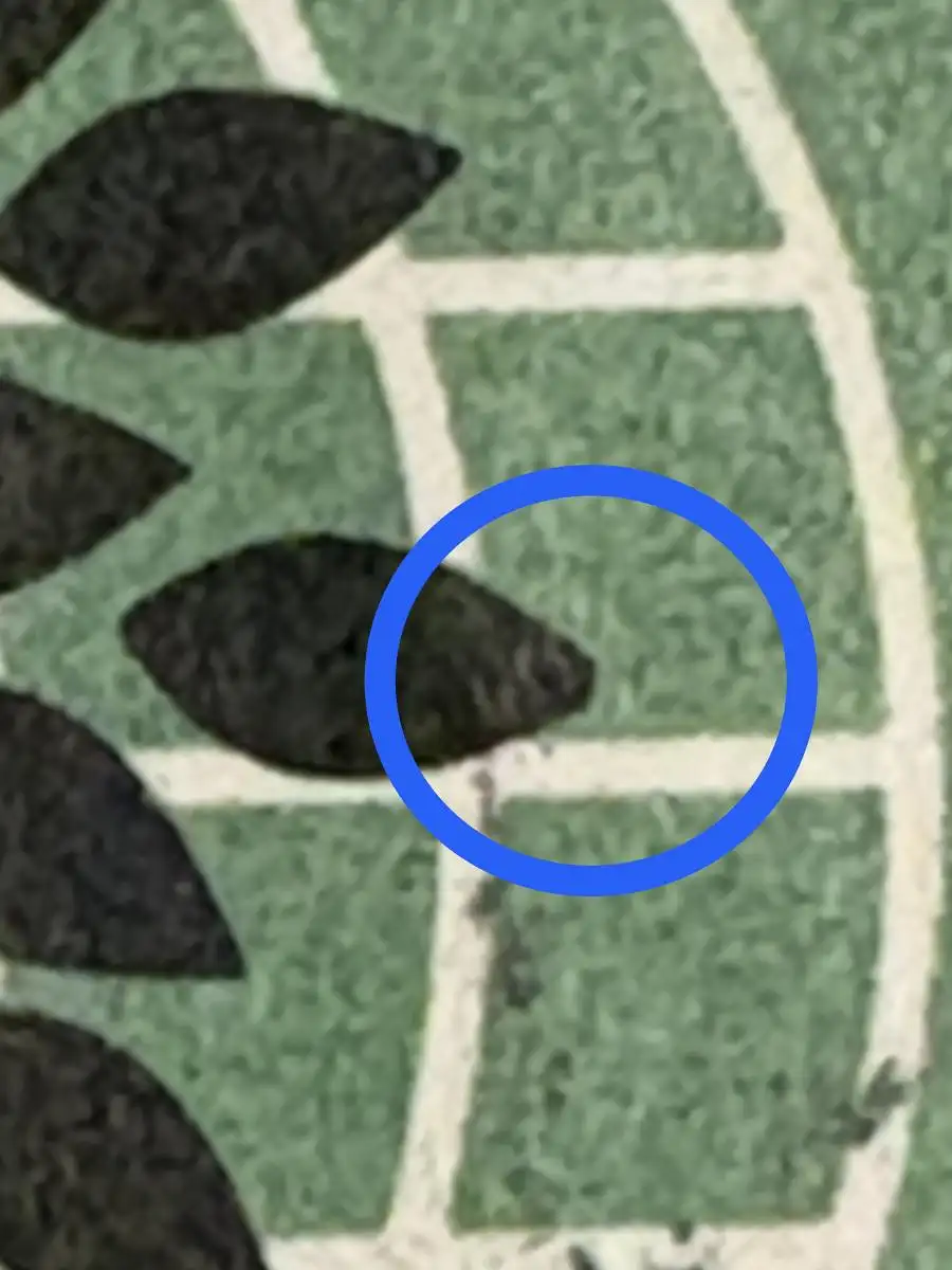 Plattenfehler Philotax Nr. 214-XD8: Spitze des rechten Blattes fehlt in Höhe von "ND" von "Bundespost".