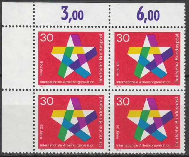 50 Jahre Internationale Arbeitsorganisation (IOA): Fünfzackiger Stern in den Farben der fünf Erdteile