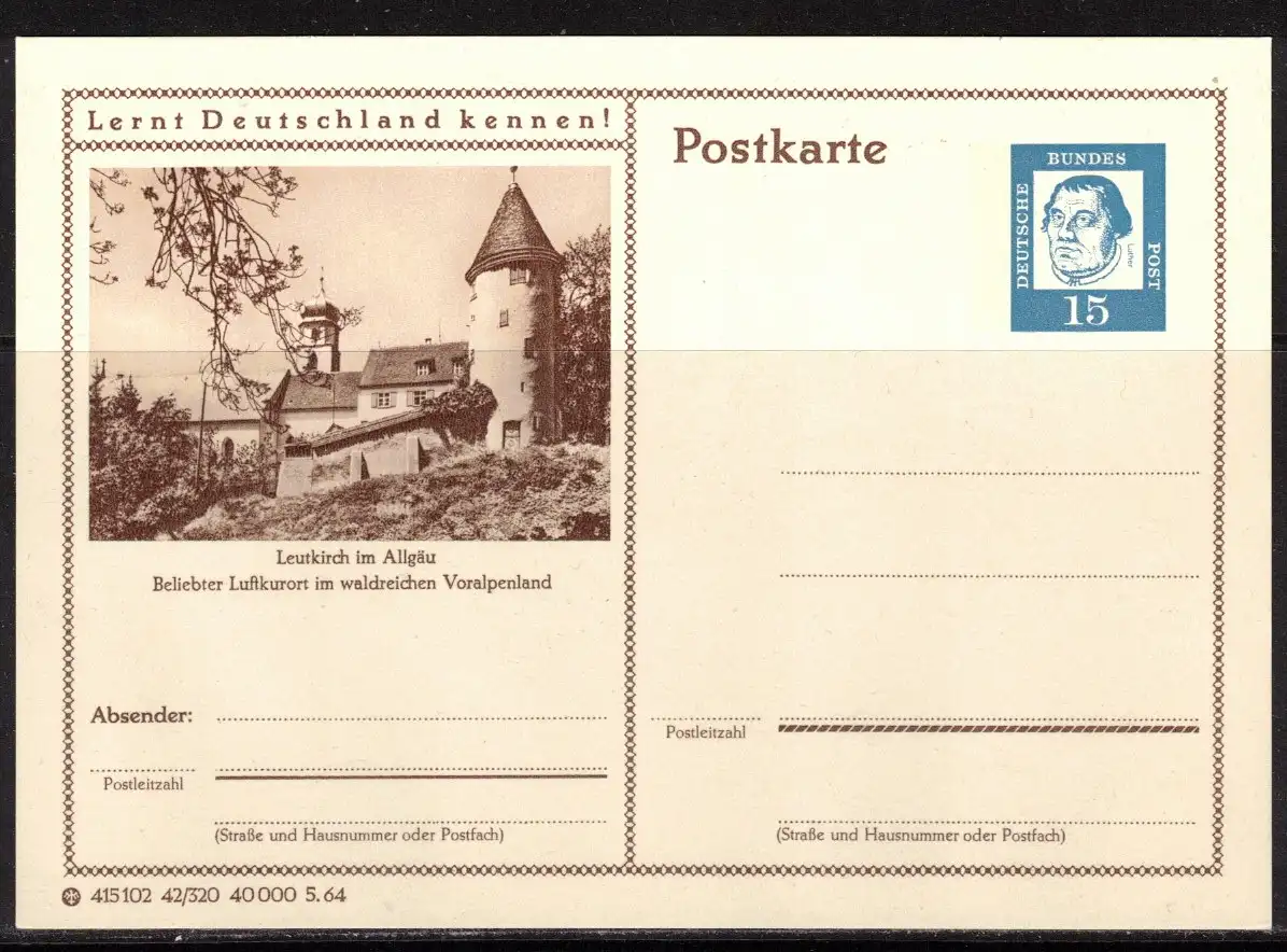 228 * BUNDESREPUBLIK GANZSACHE * BILDPOSTKARTE VON LEUTKIRCH IM ALLGÄU * POSTFRISCH **!!