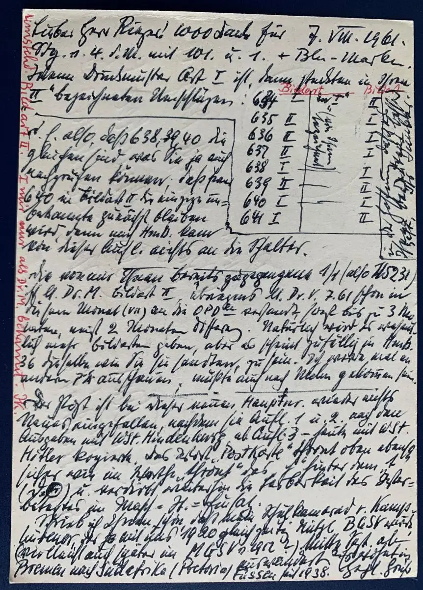 Postkarte, Mi.Nr. P53, gelaufen mit Sonderstempel vom 08.08.1961 von Hamburg nach München.
