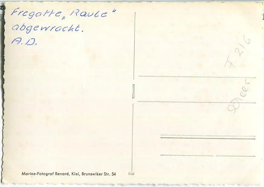 Bundeswehr - Scheer F216 abgewrackt - Verlag Marine-Fotograf Renard Kiel - leichte Gebrauchsspuren (E35547) *