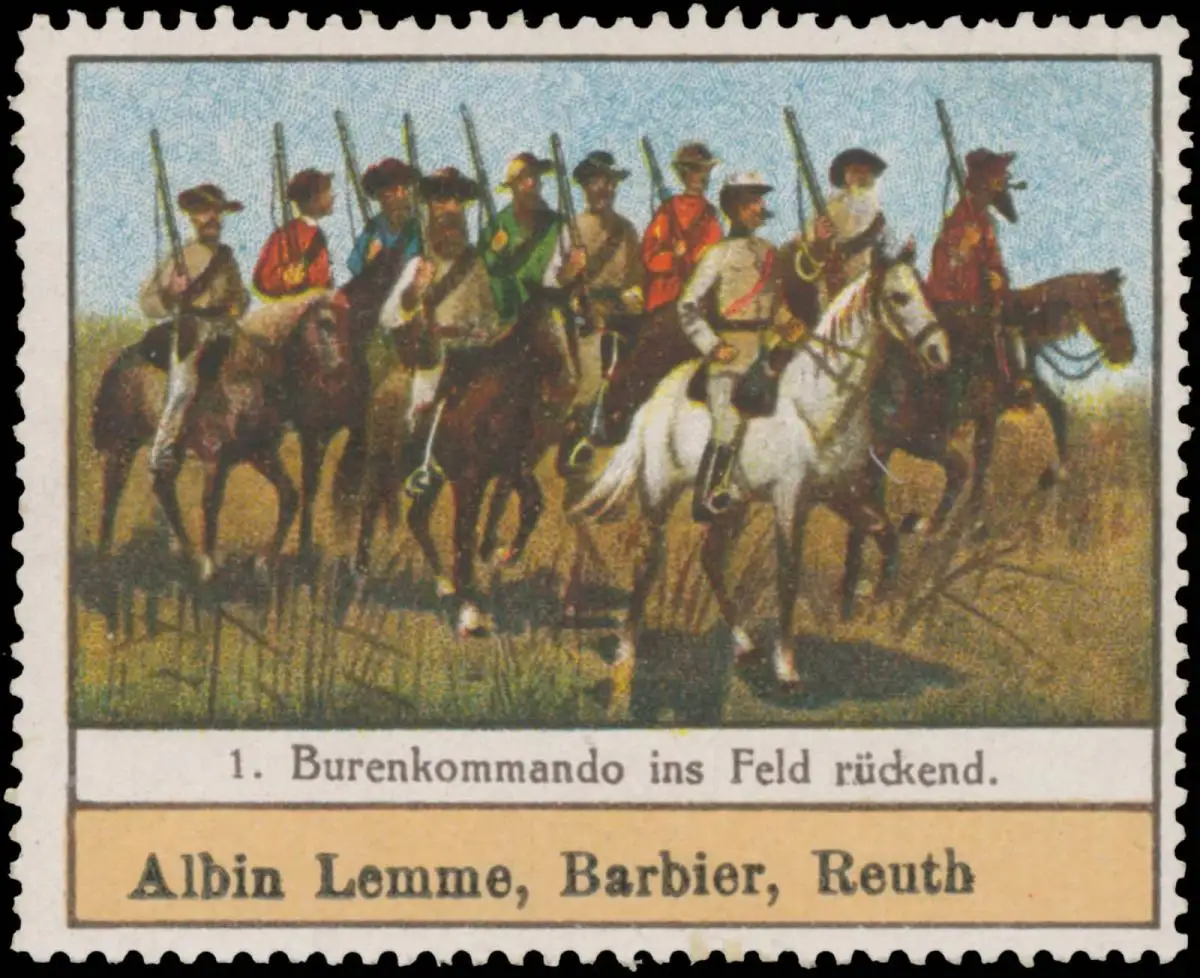 Burenkrieg, Bild 1, Barbier, Größe/Zustand: 5x6 , guter Zustand, Original alte Reklamemarke die seinerzeit für die Werbung benutzt wurde
