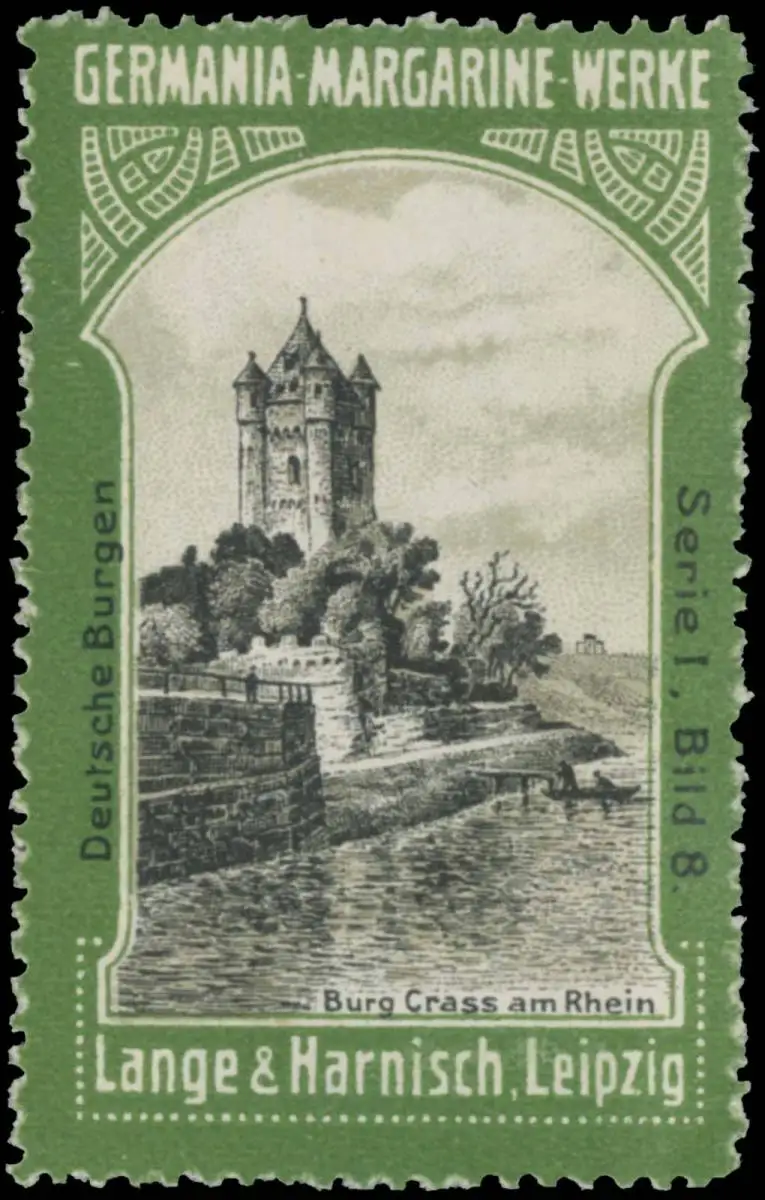 Serie I: Deutsche Burgen, Bild 8, grün, Größe/Zustand: 5x3 , guter Zustand, Original alte Reklamemarke die seinerzeit für die Werbung benutzt wurde