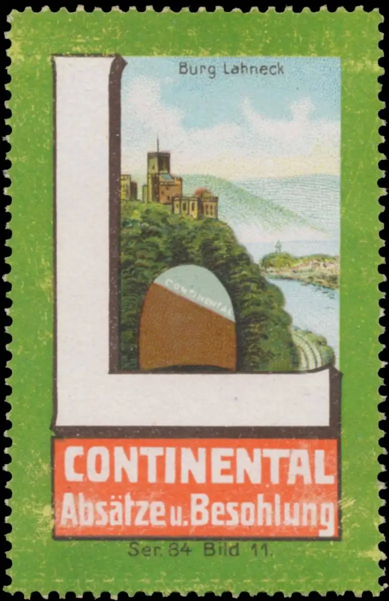 Continental Absätze und Besohlung, Serie 84, Bild 11, Größe/Zustand: 6x4 , Fehldruck, guter Zustand, Original alte Reklamemarke die seinerzeit für die Werbung benutzt wurde