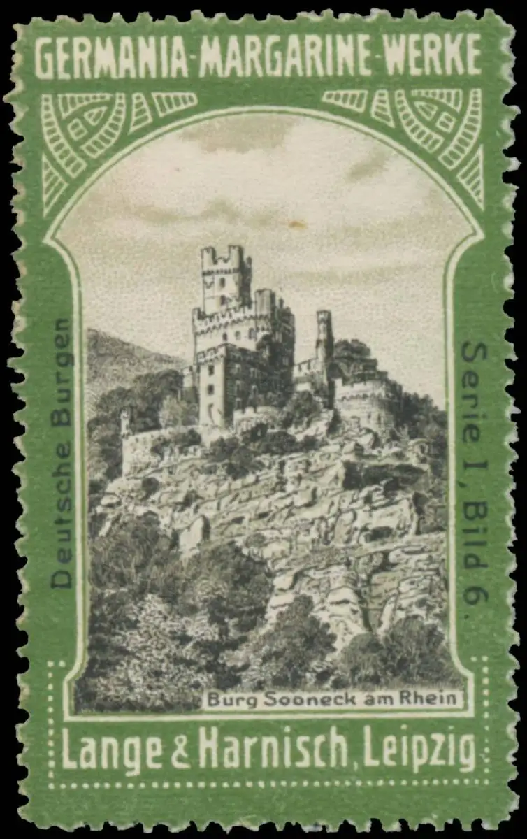 Serie I: Deutsche Burgen, Bild 6, grün, Größe/Zustand: 5x3 , guter Zustand, Original alte Reklamemarke die seinerzeit für die Werbung benutzt wurde