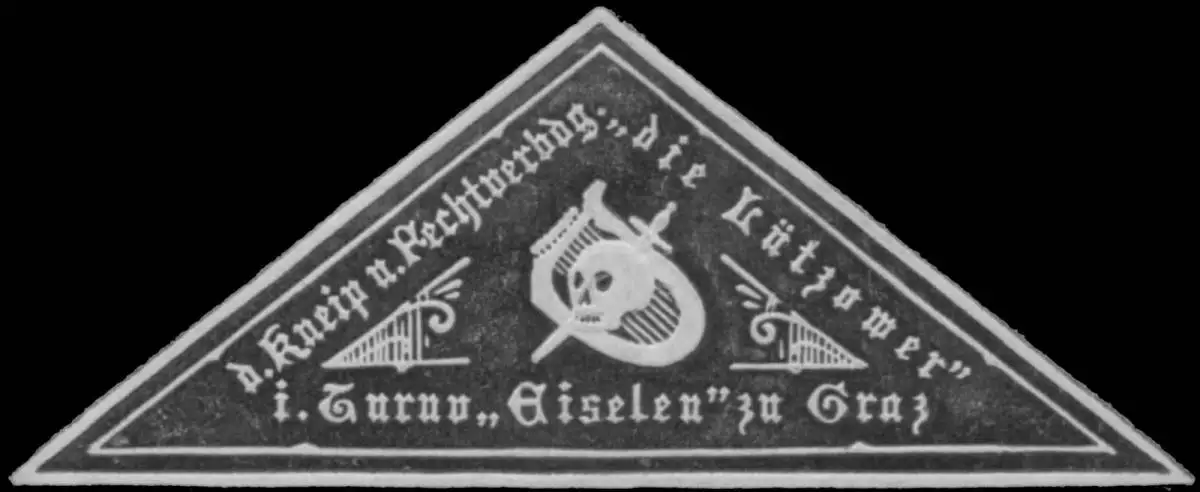 Kneip- und Rechtsverbindung: Die Lützower, im Turnverein Eiselen zu Graz, Studenten, Dreieckmarke, Sport, Todtenkopf, Größe/Zustand: 2x5 , guter Zustand, Original alte Reklamemarke die seinerzeit für die Werbung benutzt wurde