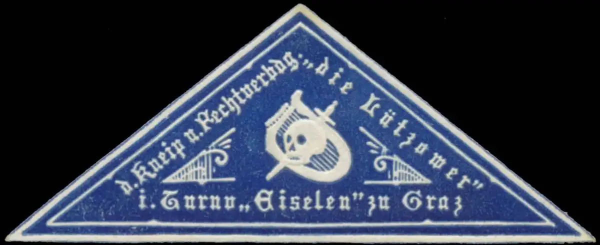 Kneip- und Rechtsverbindung: Die Lützower, im Turnverein Eiselen zu Graz, Studenten, Dreieckmarke, Sport, Todtenkopf, Größe/Zustand: 2x5 , guter Zustand, Original alte Reklamemarke die seinerzeit für die Werbung benutzt wurde