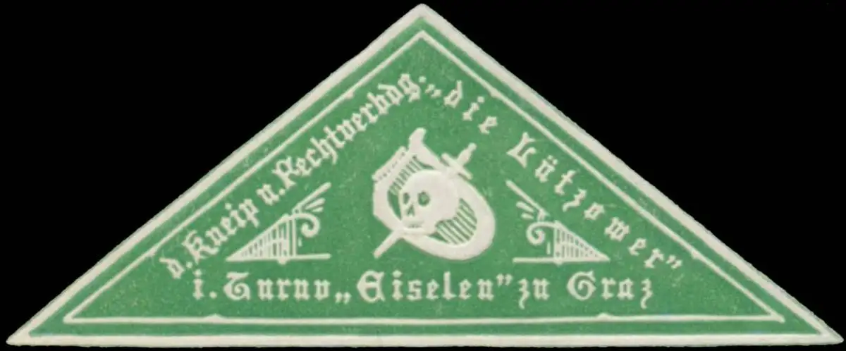 Kneip- und Rechtsverbindung: Die Lützower, im Turnverein Eiselen zu Graz, Studenten, Dreieckmarke, Sport, Todtenkopf, Größe/Zustand: 2x5 , guter Zustand, Original alte Reklamemarke die seinerzeit für die Werbung benutzt wurde