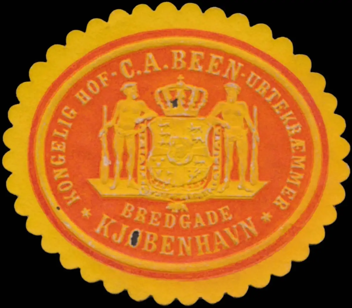 Kreuterhändler, Hoflieferant, Dänemark, Größe/Zustand: 4x4 , beschädigt, Original alte Reklamemarke die seinerzeit für die Werbung benutzt wurde