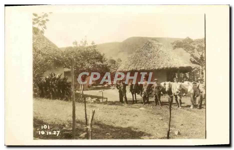 CARTE PHOTO 1927 Explorateurs sous les tropiques Chevaux