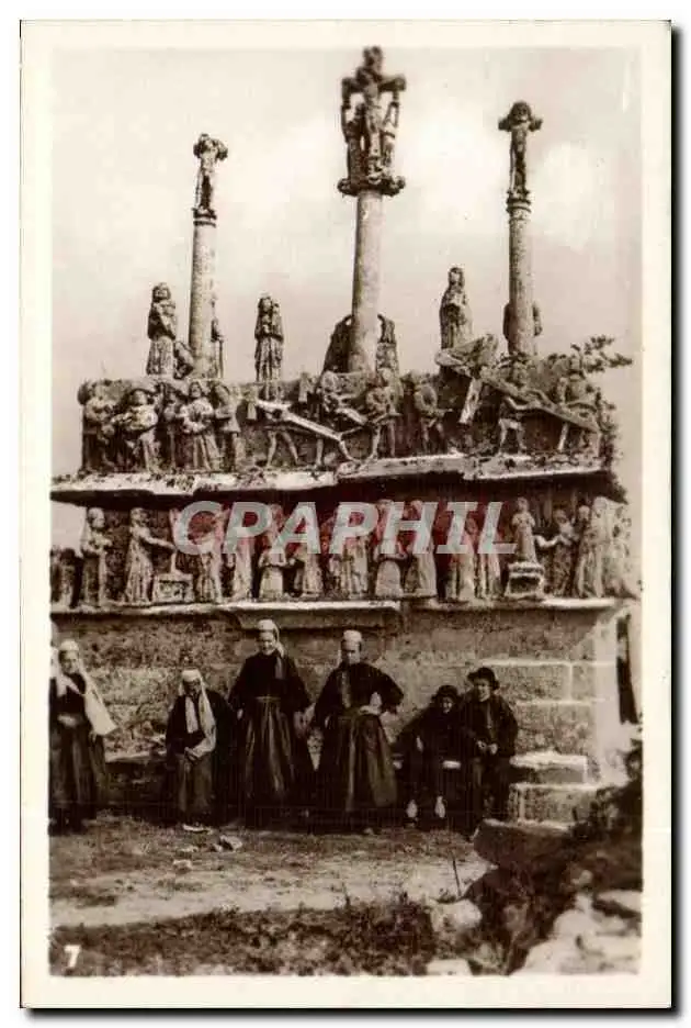 CARTE PHOTO Calvaire de Tronven St Jean Trolimon (coiffe foklore costume)