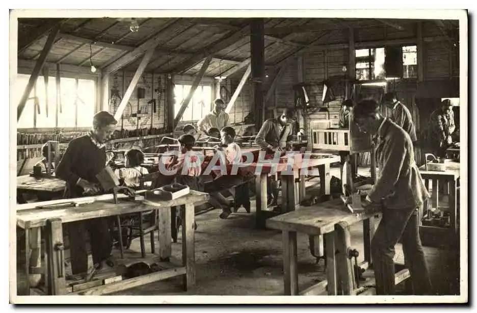 CARTE PHOTO Enfants au travail dans un atelier Ebinisterie