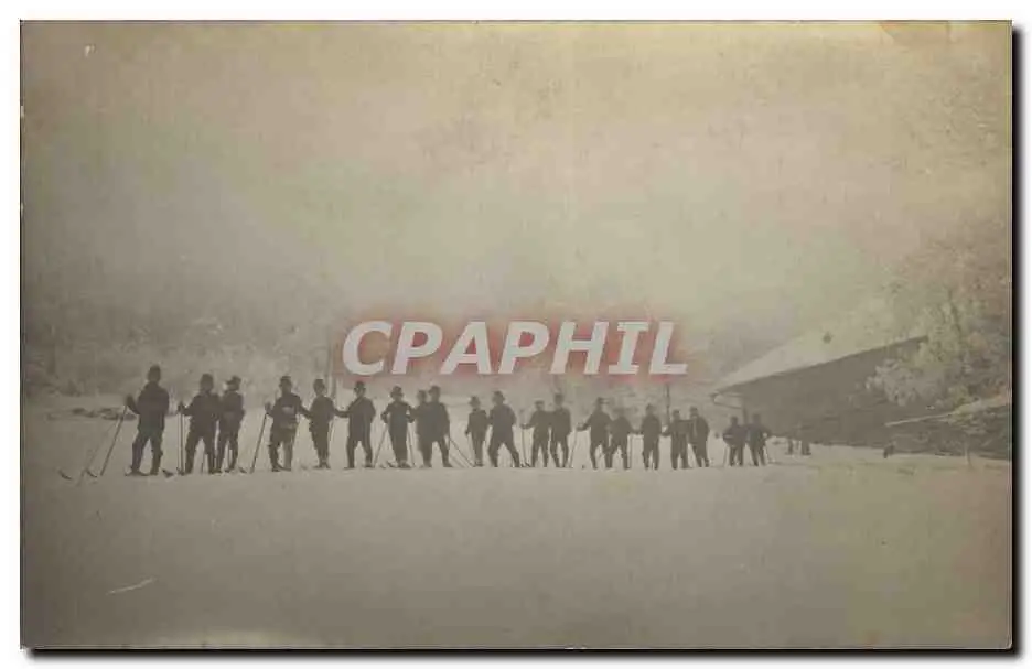 CARTE PHOTO Folklore costume hommes sous la neige en haut de forme