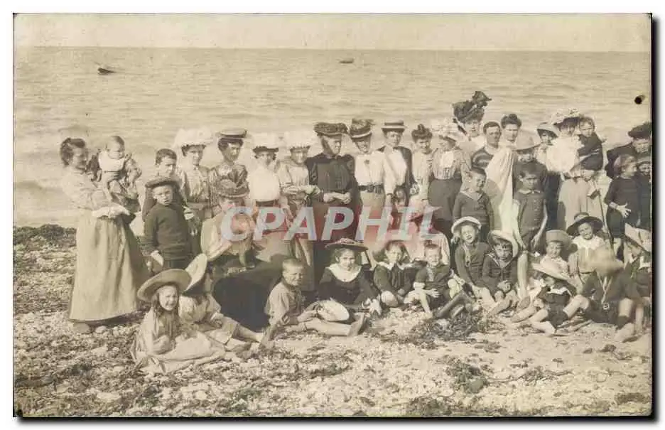CARTE PHOTO Langrune Sur Mer A la palge Femmes Enfants