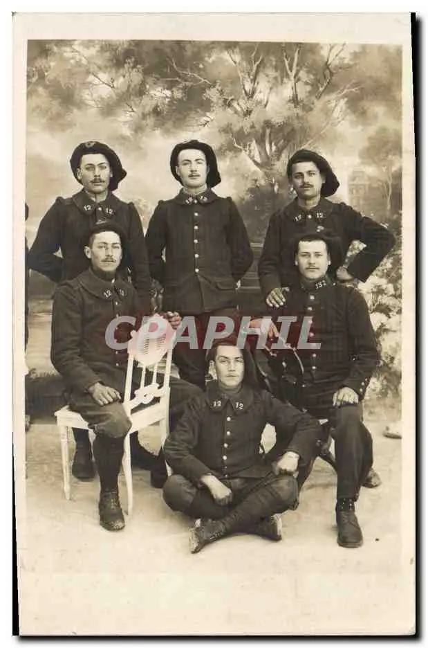 CARTE PHOTO Militaria Chasseurs Alpins (n�12 sur le col)