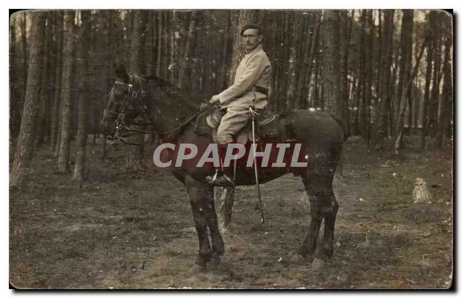 CARTE PHOTO Militaria Soldat Cavalier Cheval Horse