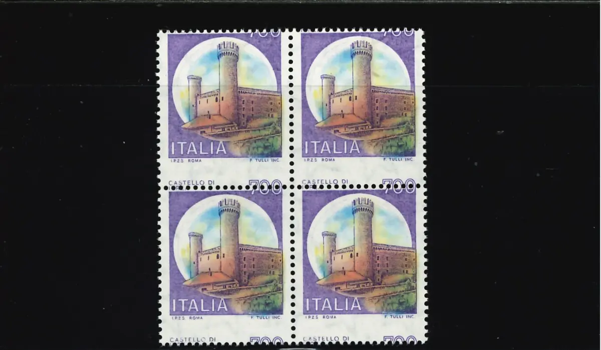 MNH - Vollgummi - CASTELLI 700 L. STARK VERSCHOBENE HORIZONTALE VERZAHNUNG IN QUARTINA - Kat. euro 280 Cod. ITAV_1241
