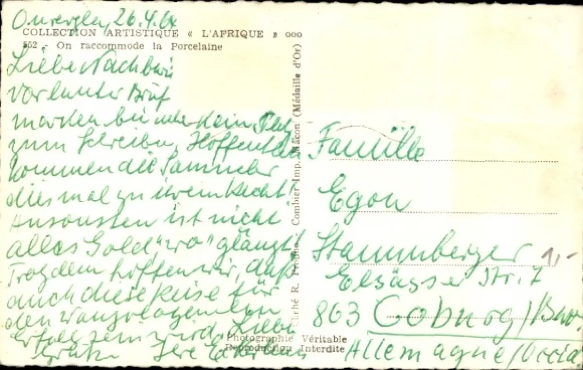 CPA Afrique, raccommode la Porcelaine