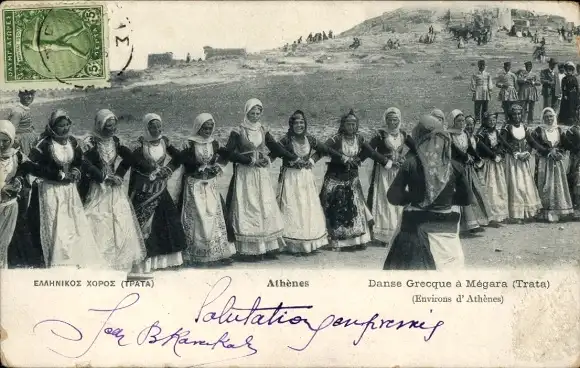 CPA Athènes Grèce, Danses Grecque a Megara