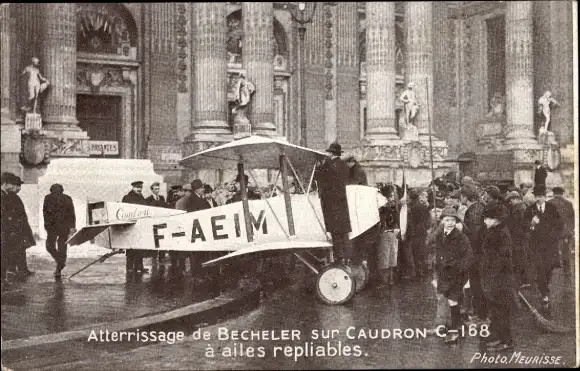 CPA Atterrissage de Becheler sur Caudron C-168 a ailes repliables