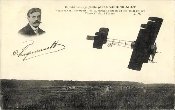 CPA Biplan Goupy, piloté par O. Vergnieault