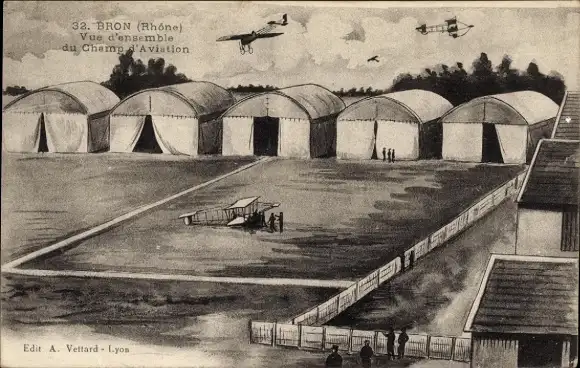 CPA Bron Rhône, Vue d'ensemble du Champ d'Aviation