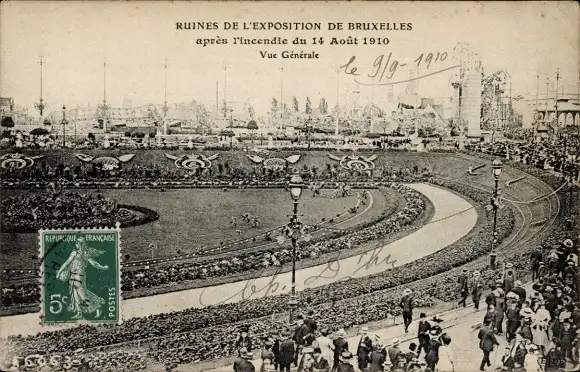 CPA Bruxelles Brüssel, Exposition 1910, Ruines après incendie, vue générale