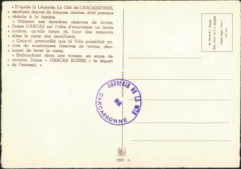 CPA Carcassonne Carcassona La vraie Légende de Dame Carcas 1955