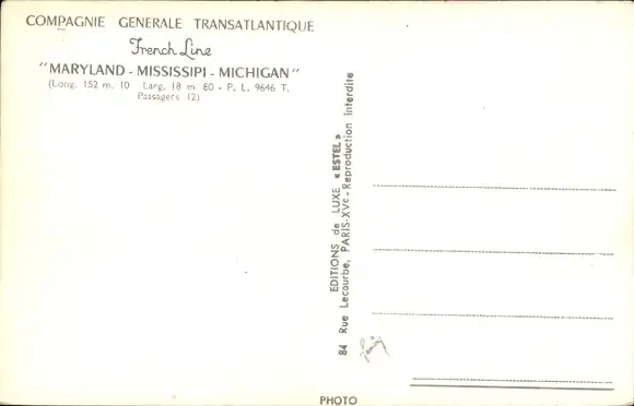 CPA Compagnie Générale Transatlantique, French Line, Maryland