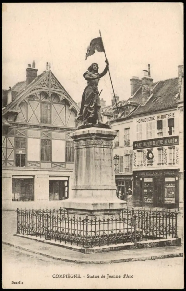 CPA Compiègne Straßen Ansicht, Statue de Jeanne d'Arc 1917