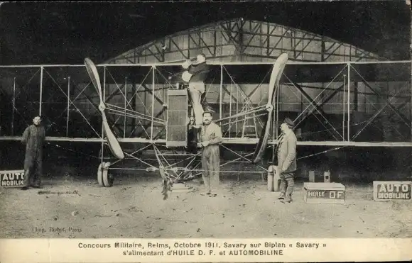 CPA Concours Militaire, Reims, Savary sur Biplan Savary