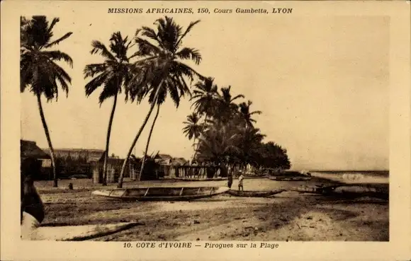 CPA Côte d'Ivoire, Pirogues sur la Plage