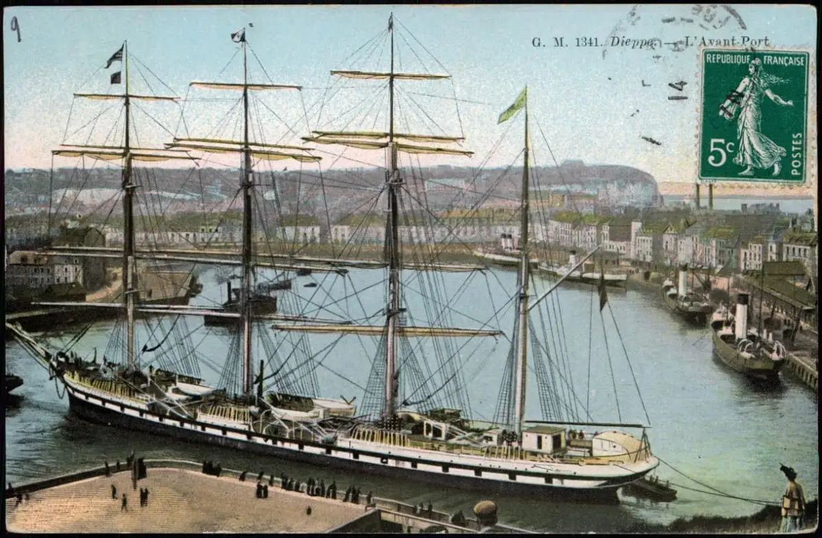 CPA Dieppe L'Avant-Port - Segelschiff 1914