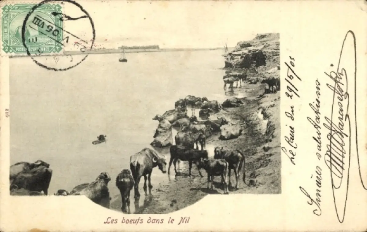 CPA Égypte, Les boeufs dans le Nil