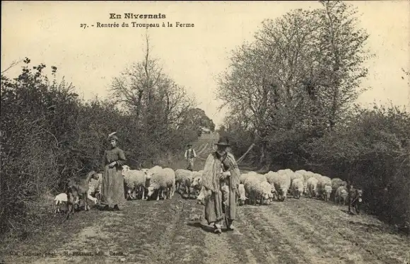 CPA En Nivernais, Rentrée du Troupeau à la Ferme