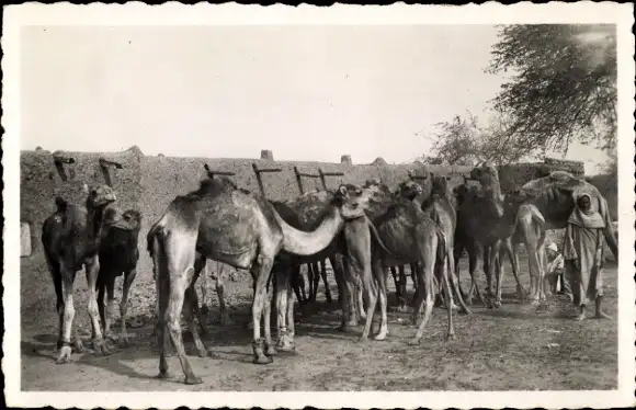 CPA Fort Lamy, Arrivée d'une Caravanne de Chameaux