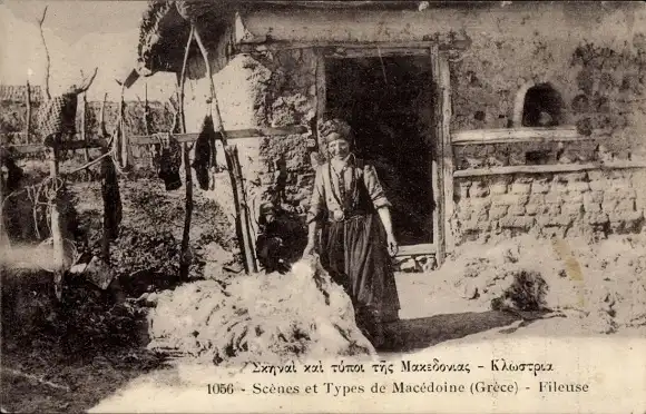 CPA Grèce, Scenes et Types de Macédoine, Fileuse