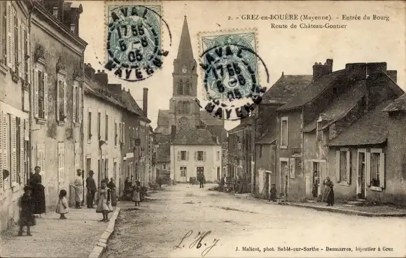 CPA Grez en Bouère Mayenne, Entrée du Bourg
