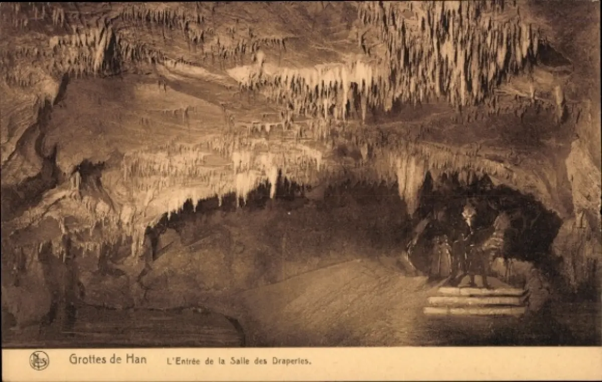 CPA Grotte de Han Han sur Lesse Wallonie Namur, L'Entrée de la Salle des Draperies