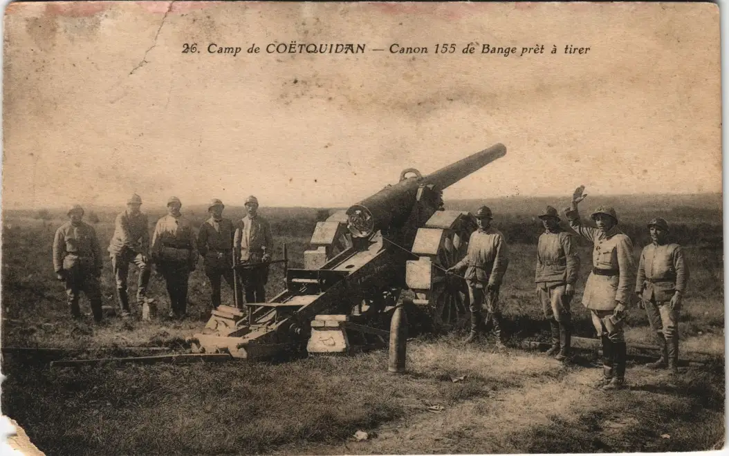 CPA Guer (Morbihan) Camp Coëtquidan Canon 155 de Bange 1930