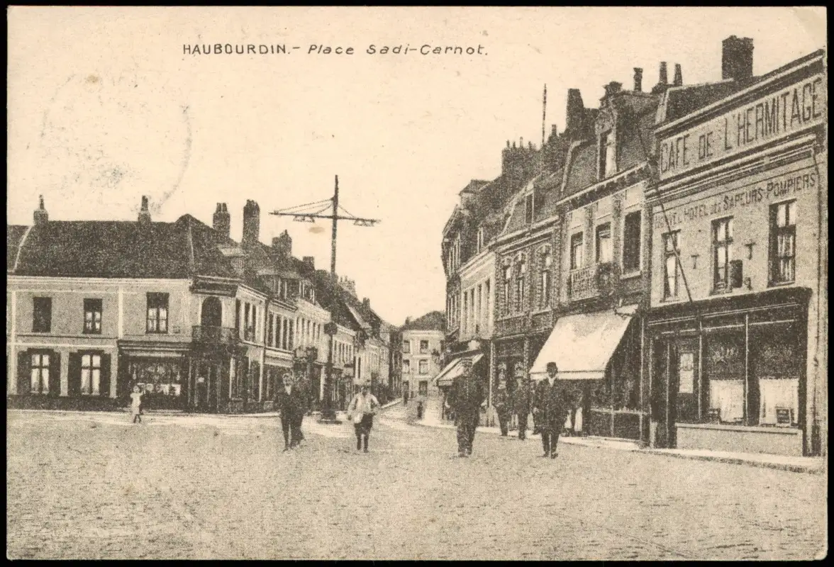 CPA Haubourdin Place Sadi-Carnot., Cafe 1917 gel. div. Feldpoststempel