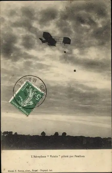 CPA L'Aéroplane Voisin, piloté par Paulhan