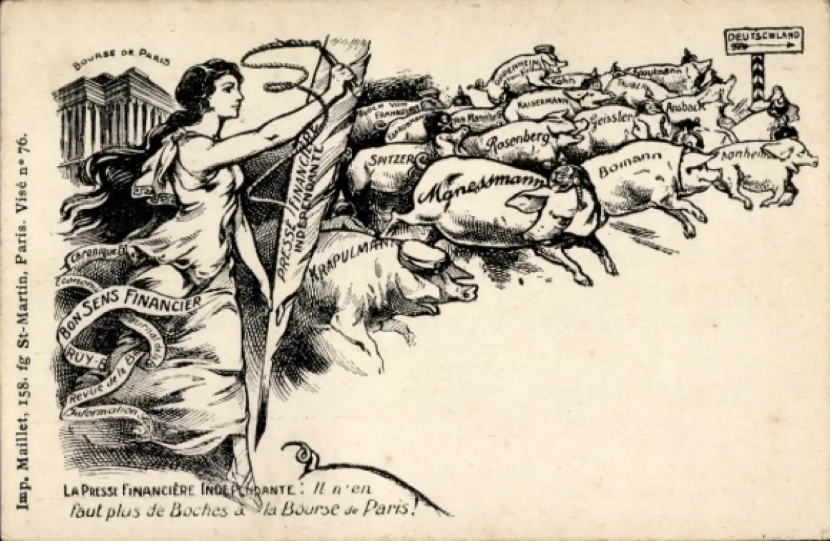 CPA La Presse Financiere Independante, Bourse de Paris, Anti-Germanique