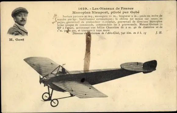 CPA Les Oiseaux de France, Monoplan Nieuport, piloté par Gobé