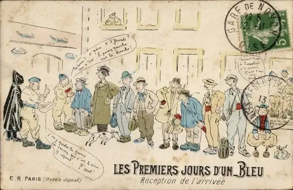 CPA Les Premiers jours d'un Bleu, Reception de l'arrivee