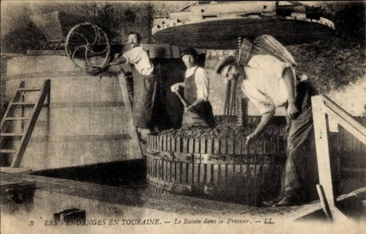 CPA Les Vendanges en Touraine, Le Raisin dans le Pressoir